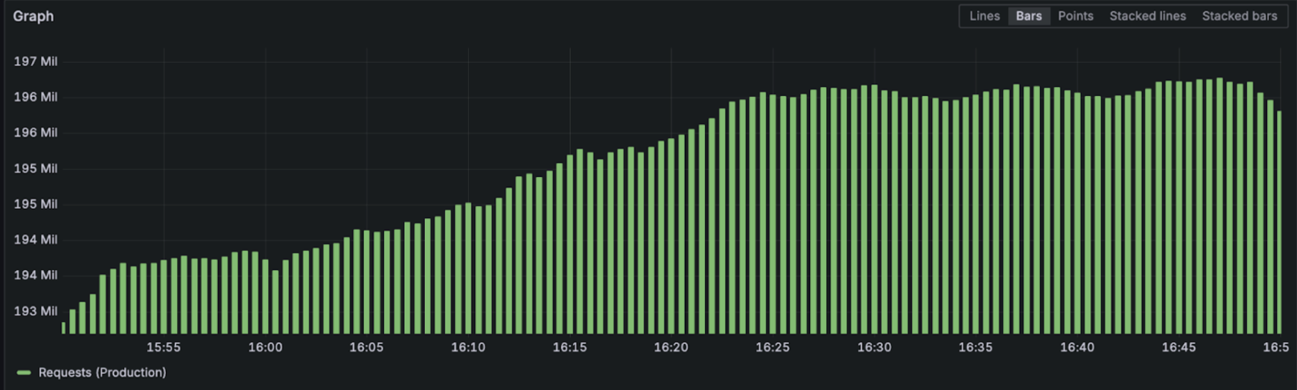 Across all production gateways we're pushing 200 million requests per hour / 63,000 requests per second.