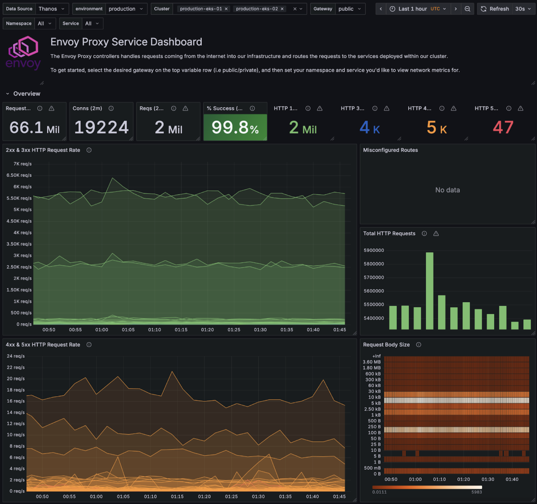 The migration gave us something bigger than a new ingress layer. It gave us consistency. Every service behind Envoy Gateway now benefits from the same routing model, the same observability signals, and the same policy framework. There is one set of metrics, one source of truth for access logs, and one control plane that defines how traffic flows through Zapier. For the first time, we have a single dashboard that lets us understand the entire edge at a glance. From the edge to the service, the same data powers visibility, rate limiting, retries, and incident response.