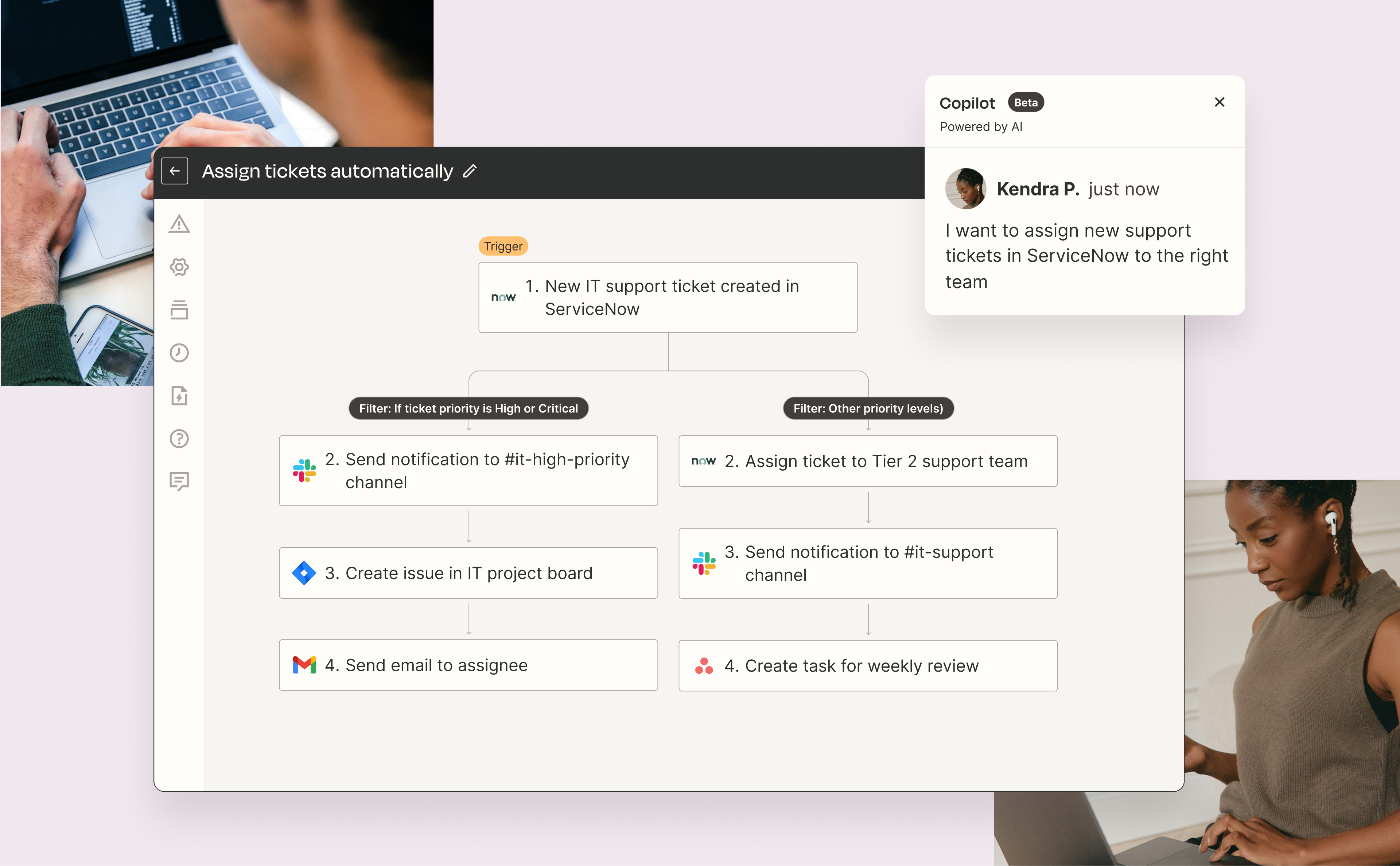 IT bottlenecks slow everyone down. But Zapier's safe suite of automation tools has everyone covered. Bust up backlogs with streamlined workflows so teams—including IT—can hit their goals.
