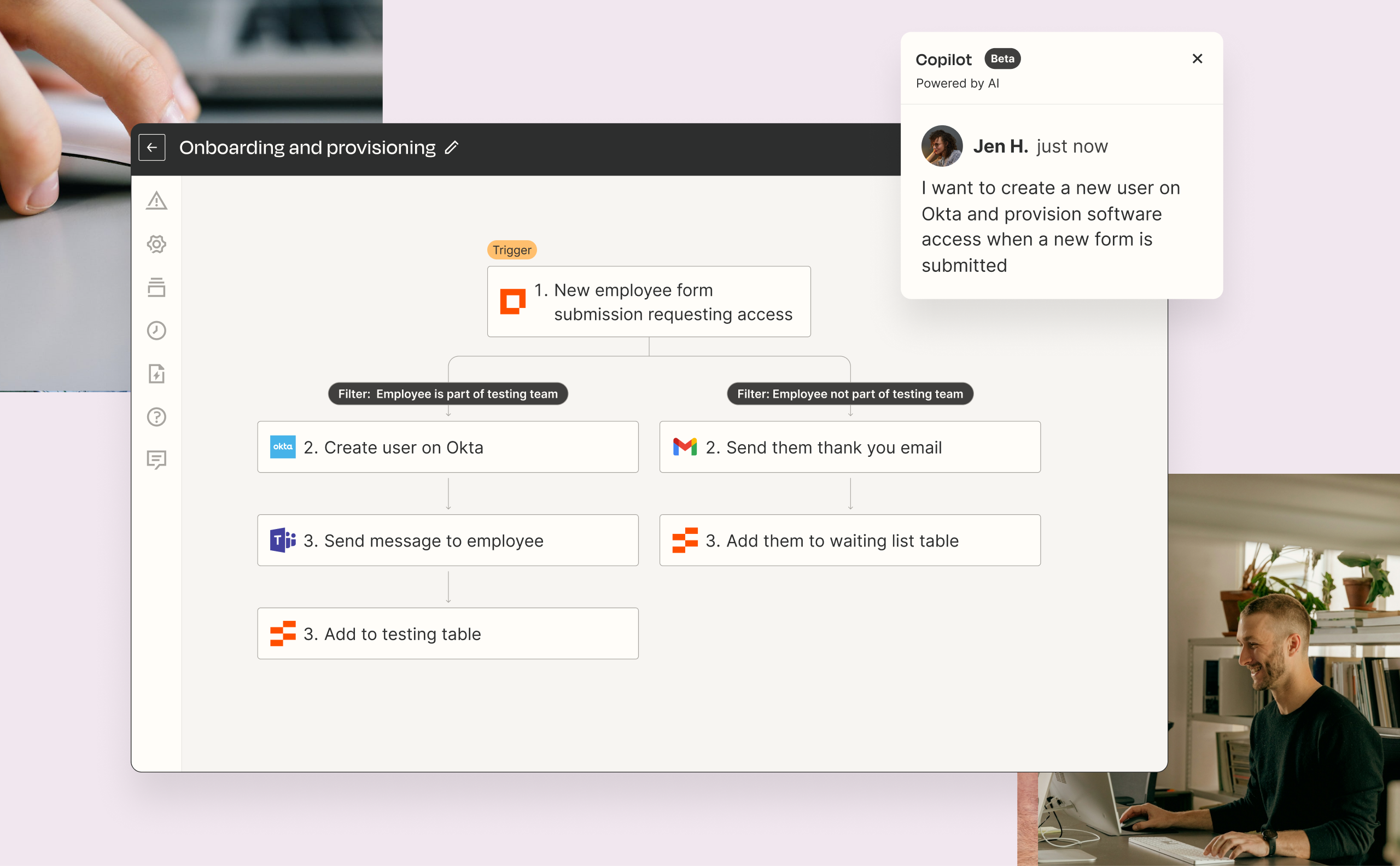 Whether it's streamlining access management or accelerating threat responses, Zapier empowers your team to build mission-critical workflows that maintain and strengthen your security posture.