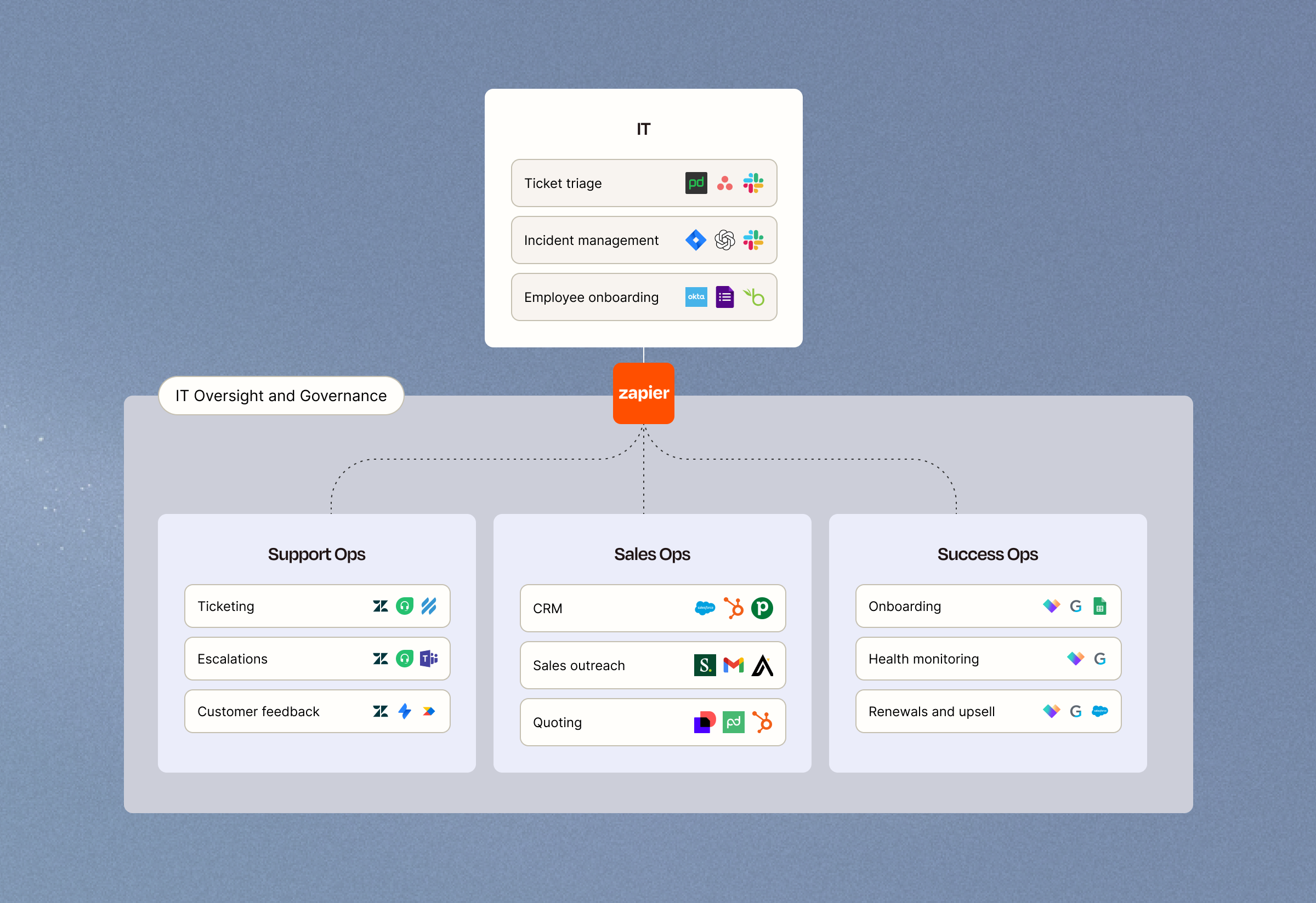 Streamline IT workflows with Zapier. Automate onboarding, alerts, and cross-department processes to boost efficiency and empower your team.