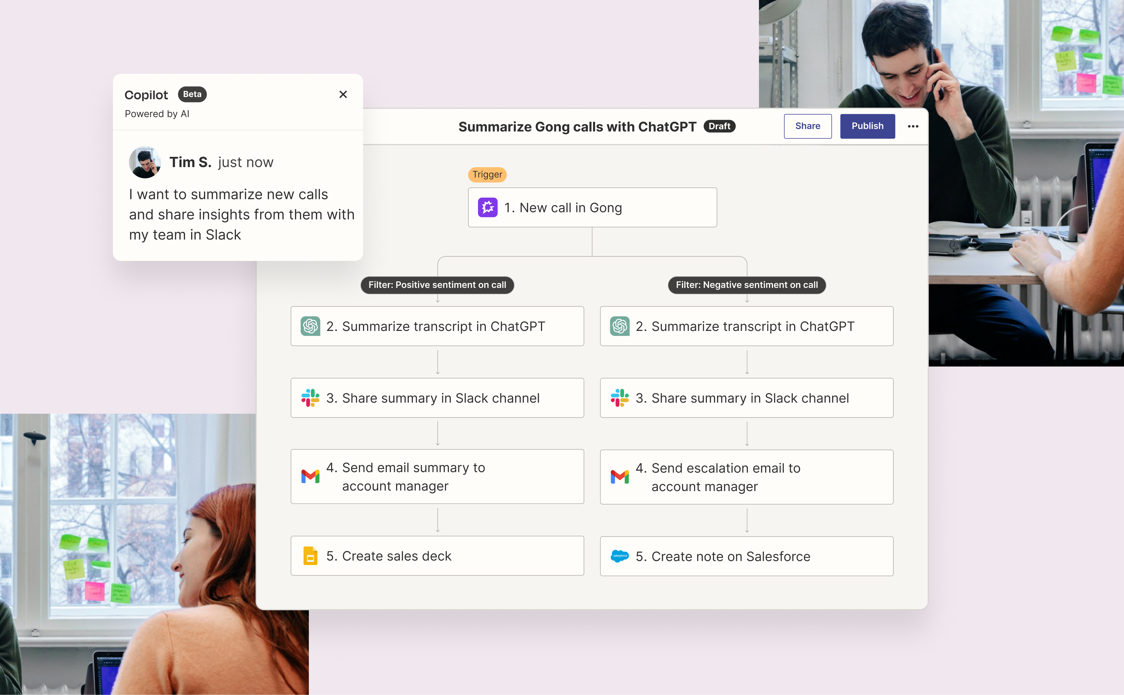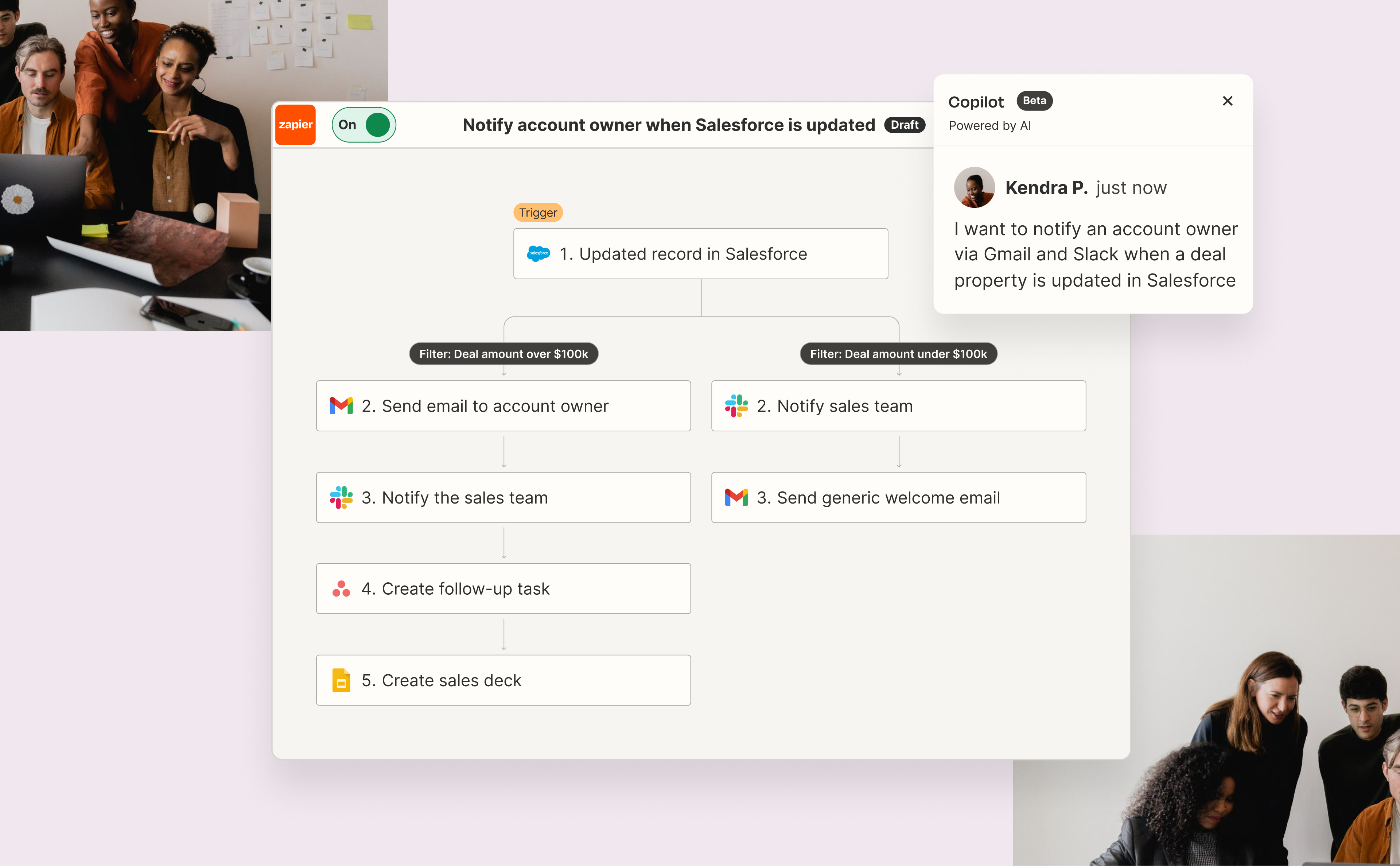 Zapier helps you bring AI into RevOps automation to unlock insight from customer touchpoints and data to give your GTM teams the context they need to deliver the best customer experiences.