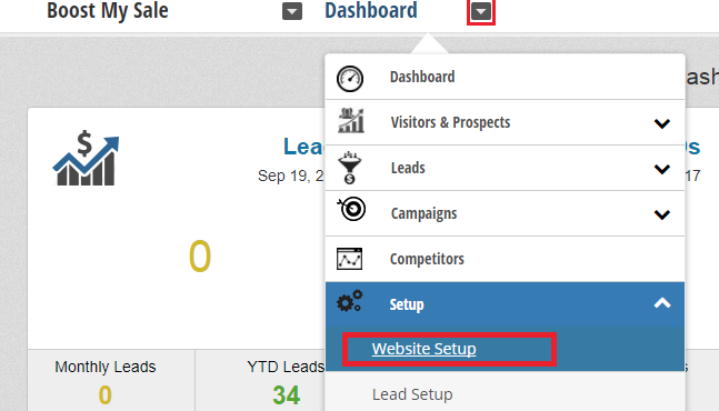 - Go to "Website Setup" on the Dashborad.