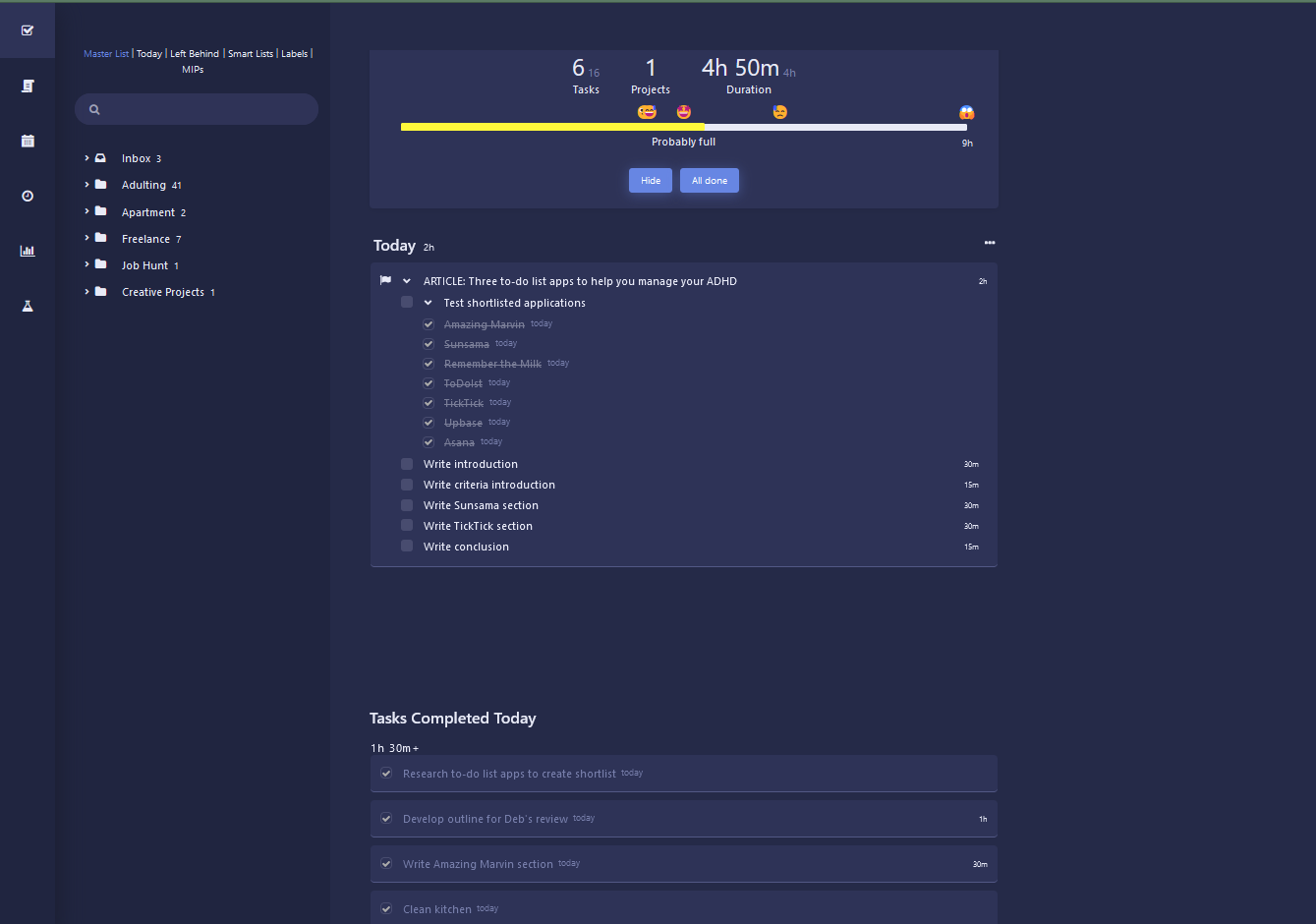 Amazing Marvin isn't an app you'll find in the usual roundups, and that's a crying shame—because this is hands down the best to-do app for ADHD that I have ever used. An intuitive structure and powerful features combine to create an app that lets you organize life the way you want to.