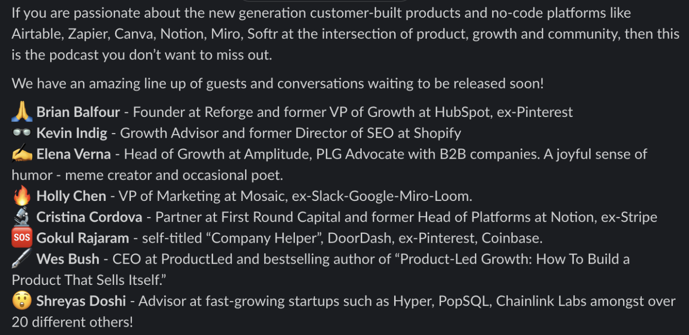 Take the podcast's mini series Go-to Market Plays, for example. Each week, Daniel and his guest host Tamara Grominsky break down one go-to market strategy in 10 minutes or less. It's short and sweet, and filled with practical advice. Their main episodes are also filled with the same kind of actionable advice, but they're focused on broader topics—like how to start a YouTube channel and how to market complicated products.