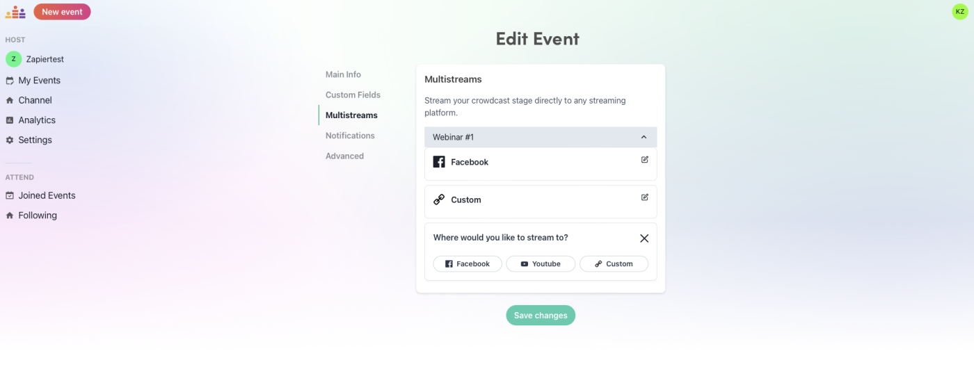 You can also connect Crowdcast to Zapier, which will let you do things like automatically add event attendees to your mailing lists. Here are a few other examples to get you started.