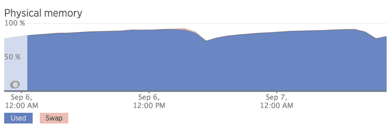 Further, we noticed that most of this memory usage smelled a bit like fragmentation –tons of memory pages were being moved to swap but it didn't seem to hurt performance at all. Clearly Celery or our Python code wasn't touching these fragmented pages of memory very often.