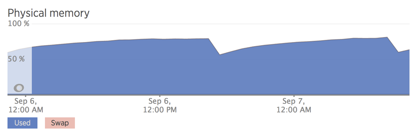 To process all the activity within our service, we run about 150 Celery workers with the settings -w 92 on our m3.2xlarge – which means each worker got approximately ~320 MB of RAM. This should have been plenty, yet it wasn't uncommon to have 8-12 GB of swap usage on a worker after a couple hours running normally. Not only was this taxing our RAM, it was also preventing us from upgrading to newer versions of Amazon hardware which didn't have the faster instance store enabled over EBS.