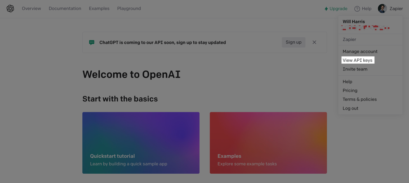 You'll also need an OpenAI account if you don't already have one. Go to platform.openai.com to sign up for your account.