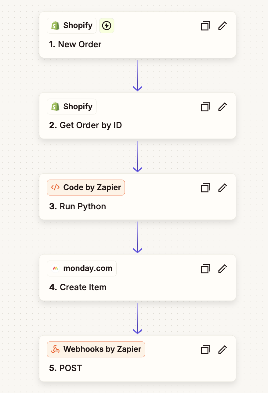 Trigger: Every time a new paid order comes through Shopify, the Zap begins.