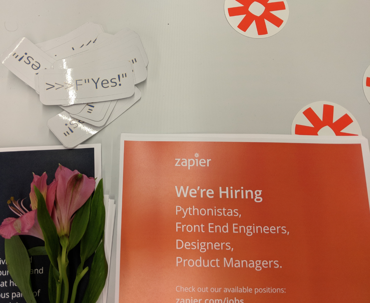 Zapier is growing, and we have numerous open positions that we're looking to fill. (We're a remote company, so you can work from anywhere!) If you're at PyCon, we will be at the Job Fair on Sunday, May 5th, 2019, from 10 AM - 1 PM at Exhibit Hall B & C Table #24. The Job Fair is free for PyCon attendees, but it is also open to the public for a small fee. If you're in Cleveland not attending PyCon, but are interested in talking to us, you can get a job fair ticket online through PyCon's registration.
