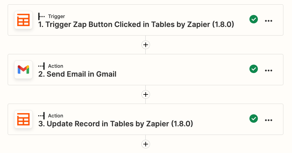 If you've created an automated workflow with Zapier before, creating a Zap with Tables will be the same. You can create a Zap from scratch with our point-and-click editor or create a Zap from within a table.