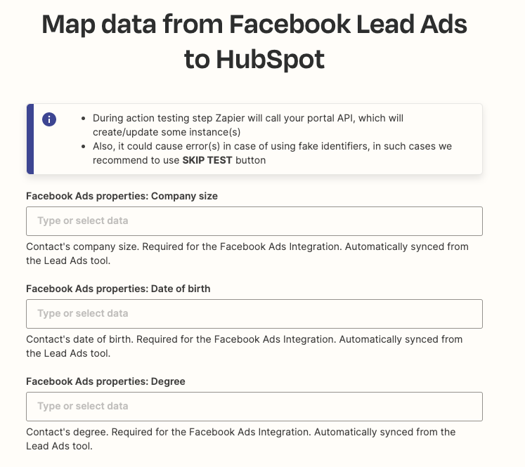 If you're using a different app than Zapier Tables, your action fields will look a little different. But you'll need to follow the same steps of clicking within those fields and mapping the data from your trigger app to each field.
