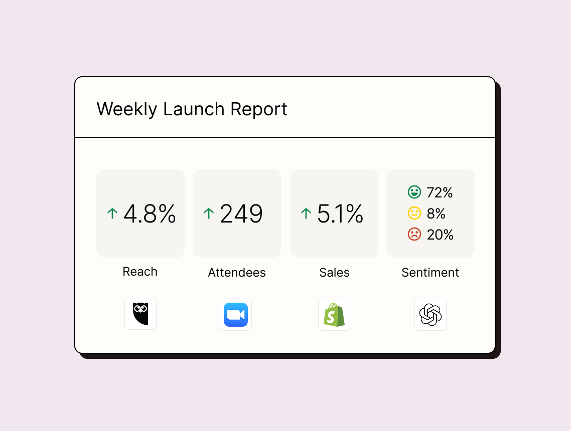 Connect your marketing tools, manage your marketing calendar, and monitor customer sentiment all in one streamlined workflow.