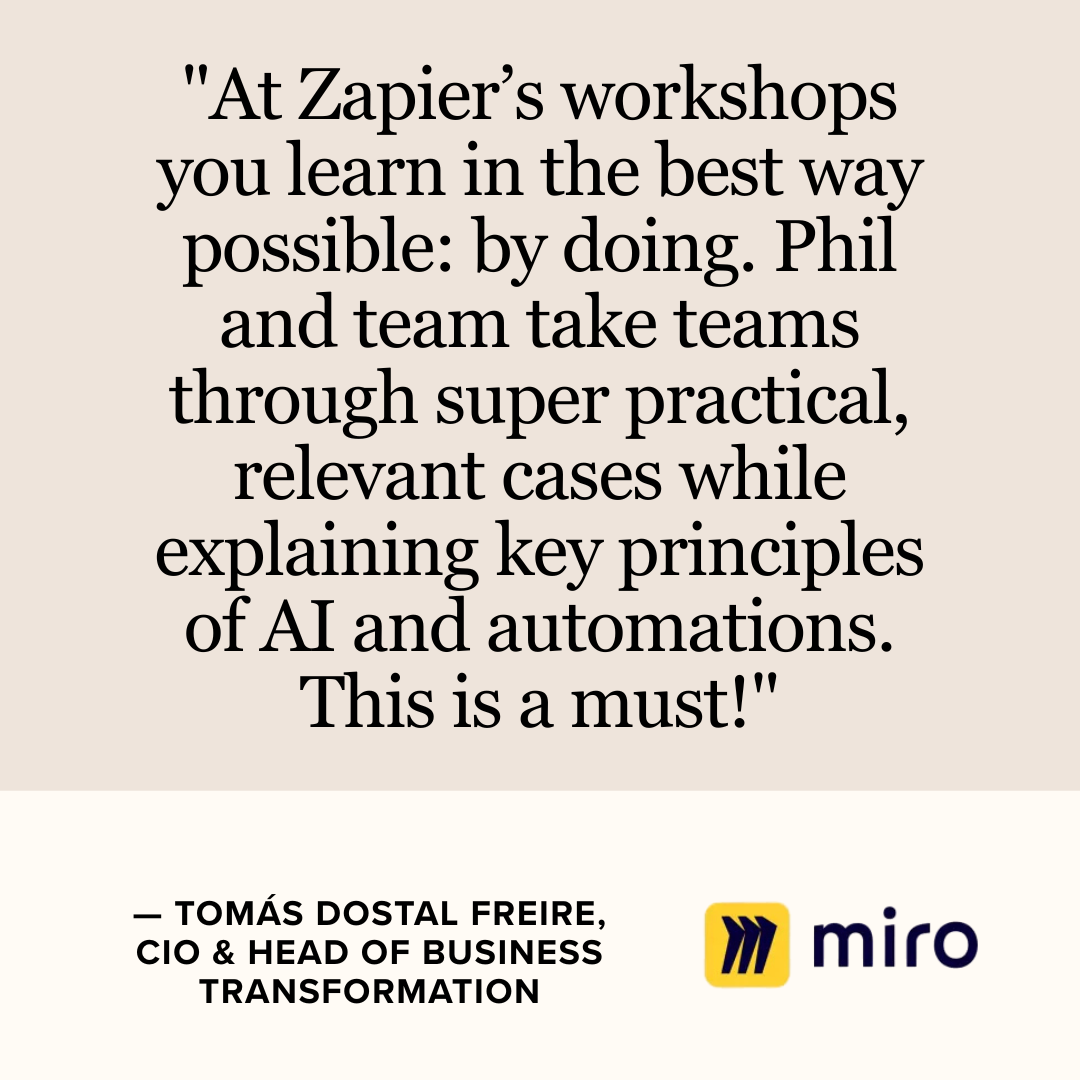 Join a curated group of senior enterprise leaders for a one-day workshop designed to accelerate AI adoption across your organization. You’ll uncover what works and what doesn’t in AI enablement, explore a proven company-wide rollout framework, and see an agentic workflow in action.