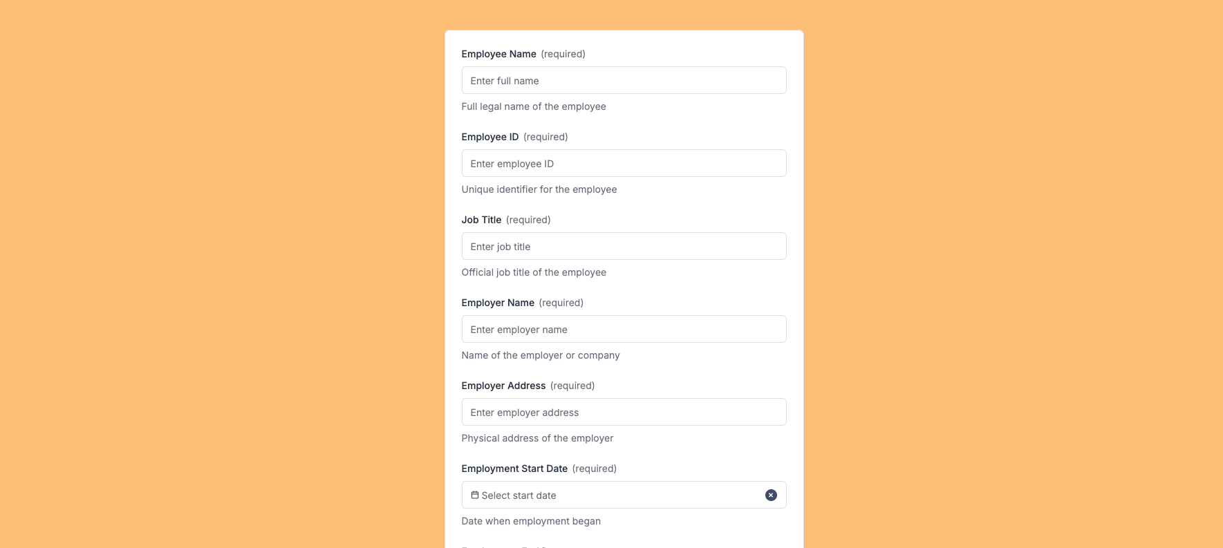 - User-Friendly Interface: The form is designed with a clean and intuitive interface, making it easy for candidates to fill out their employment history without any confusion.