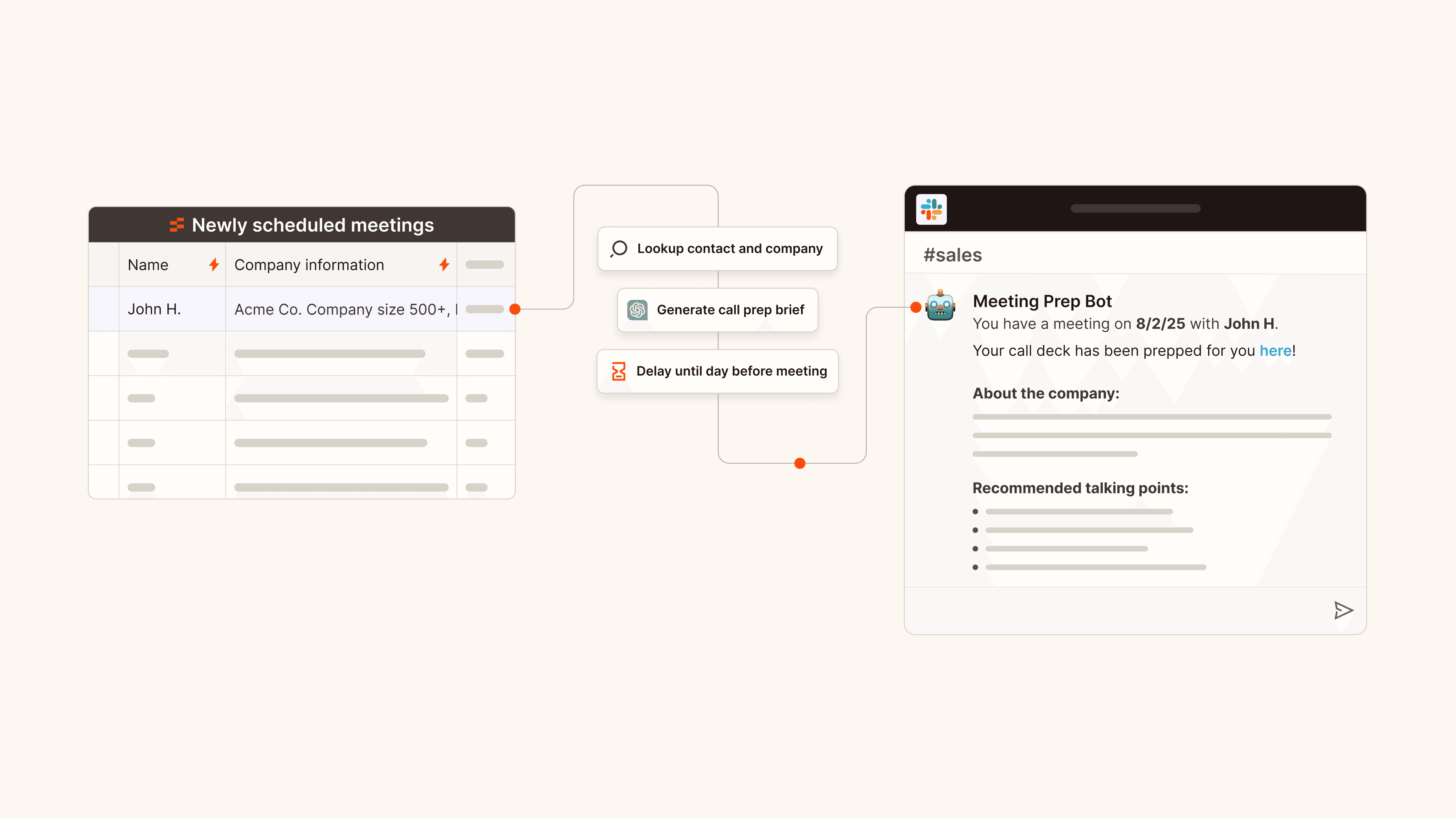The team built an automated handoff workflow using Zapier to connect HubSpot with email, Slack, Google Slides, and Asana. Now, when a deal hits the “qualified to buy” stage, the right people are notified, assets are generated, and handoff tasks are launched—automatically. This keeps everyone aligned, reduces lag time, and ensures a smooth transition from one team to the next.